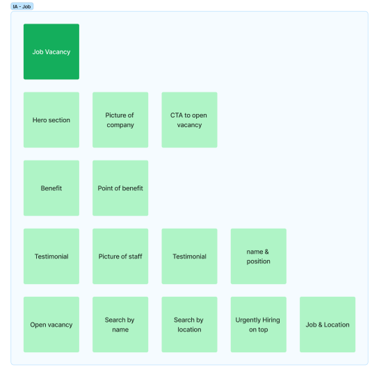 Setelah proses research selama 3 hari, kami membuat sitemap dan information architecture. Proses ini memakan waktu 2 hari sehingga menghasilkan sub page seperti Produk Page, About Page, Contact Page, News and Event Page, Job Vacancy Page.