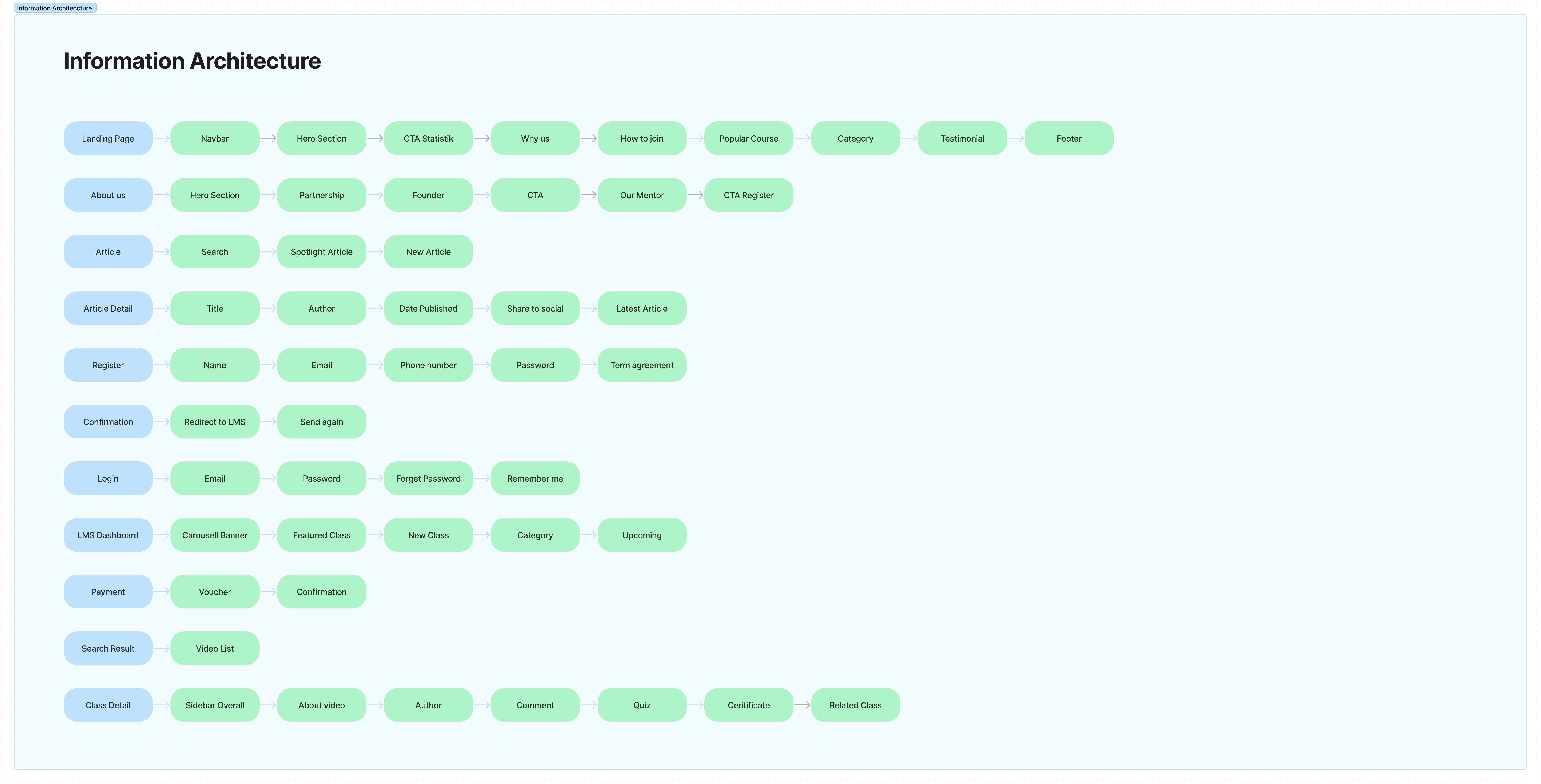 Proses dimulai dari diskusi produk dan bisnis dari client. Client memberikan brief berupa target market, KPI, dan kompetitor mereka. Setelah mendapat brief saya melakukan competitve study ke beberapa kompetitor indonesia yang memiliki target serupa dan bentuk bisnis kursus yang paketnya adalah berlangganan. Proses desain juga akan dilakukan untuk website responsif sehingga saya akan membuat 2 desain berbentuk mobile dan desktop.